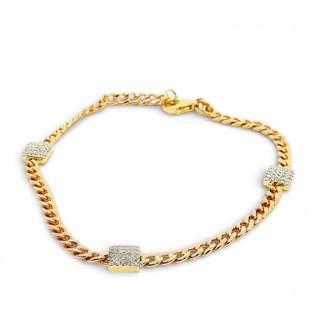 3 Diamond square on Cuban Chain bracelet YG