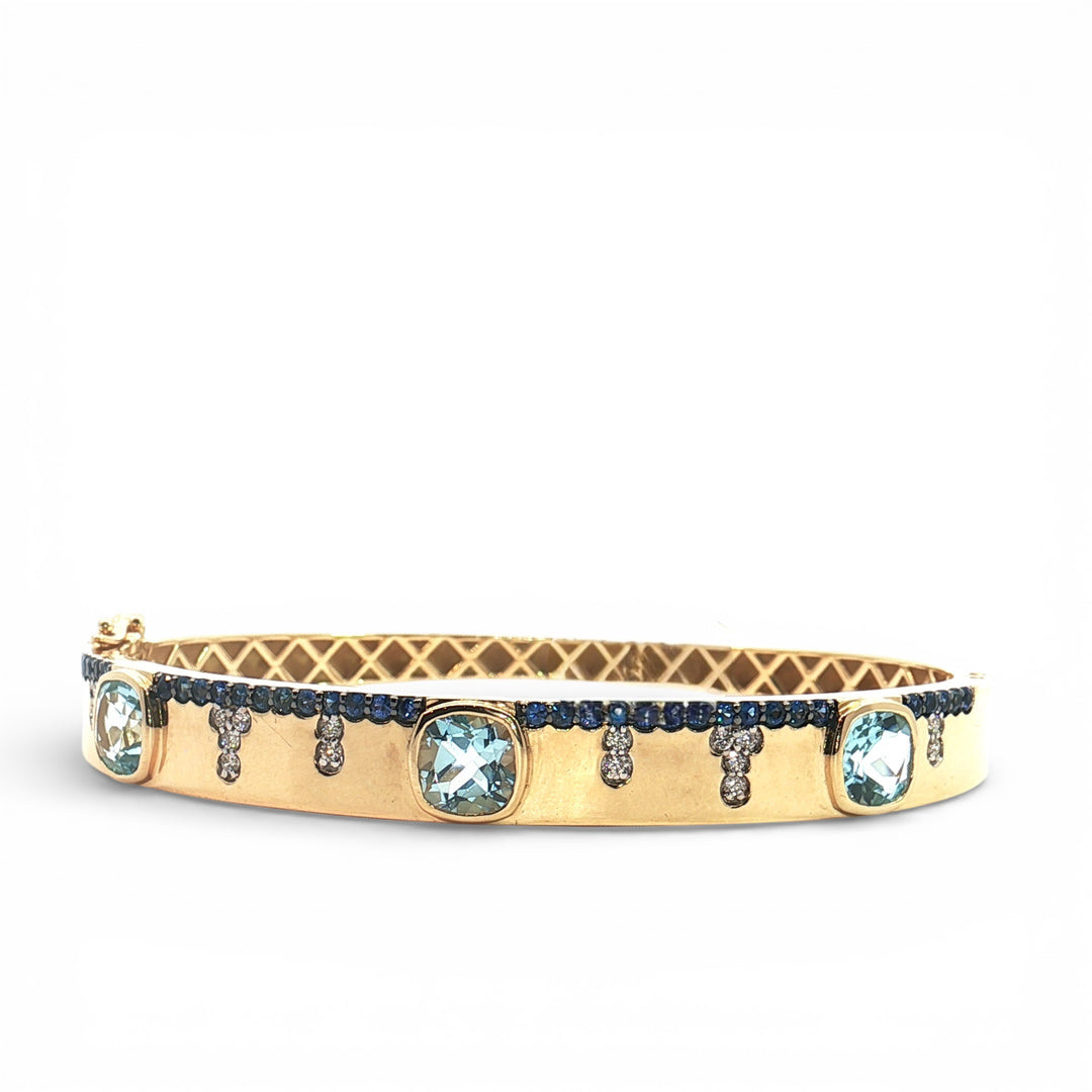 Aquamarine and Sapphire bangle bracelet YG