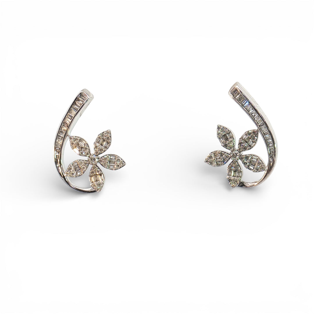 Diamond Baguette J earring with diamond flower