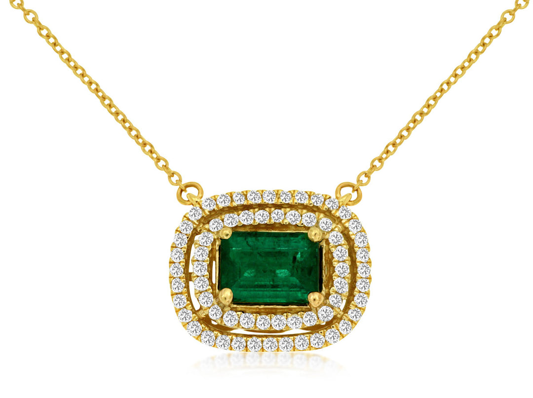 Emerald solitaire necklace with diamond halo 14K YG