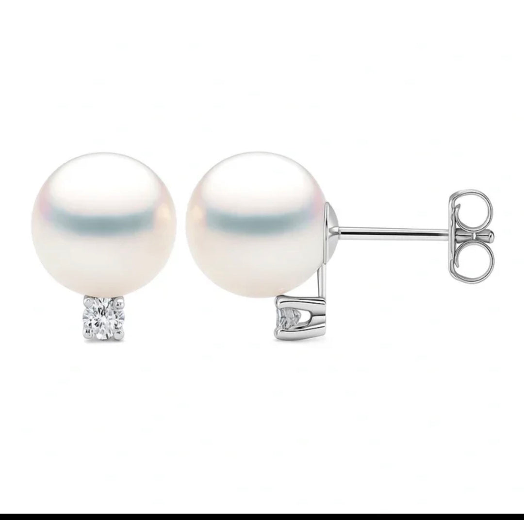 14KW Cultured Akoya Diamonds Studs 8-8.50mm