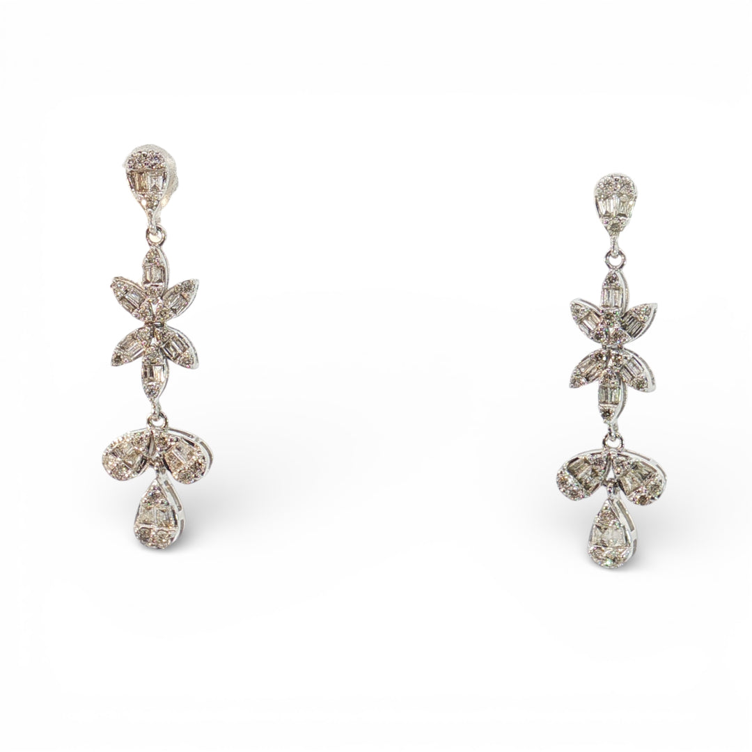 Elegant diamond bridal floral hanging earring