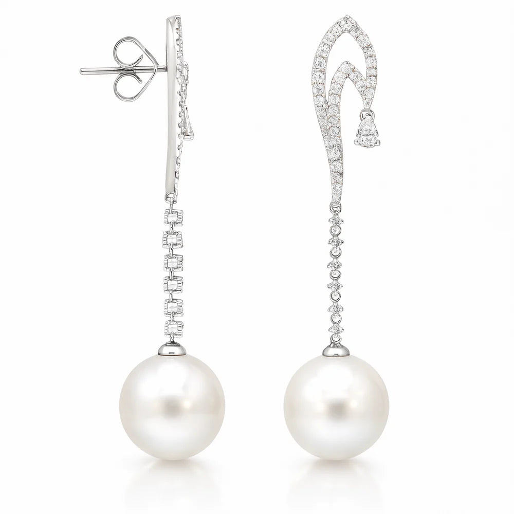 Diamond pearl drop earring with pear shape