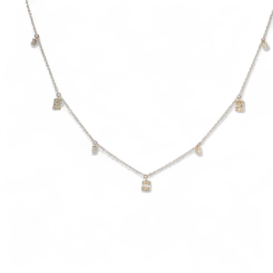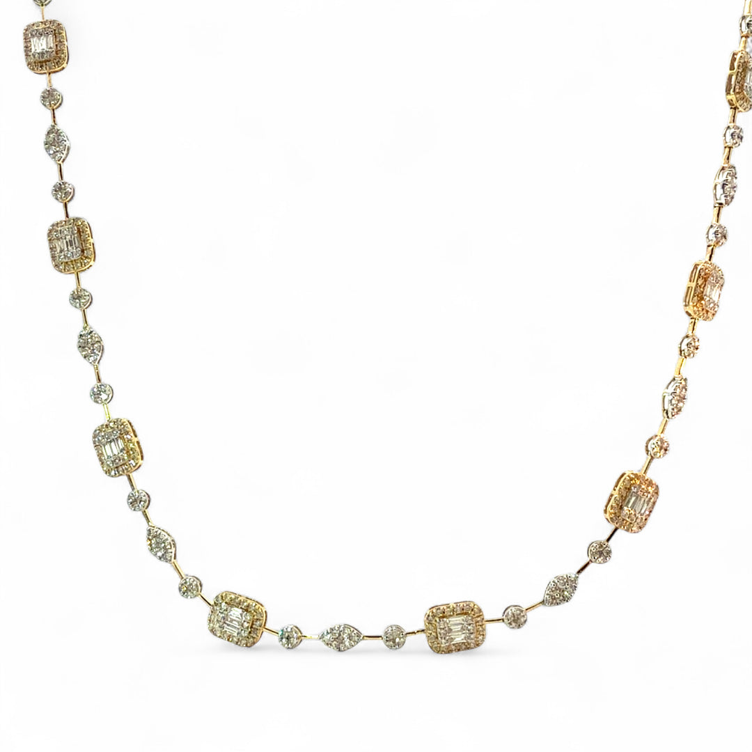 Diamond Emerald, Marquise and Round stone two tone Necklace