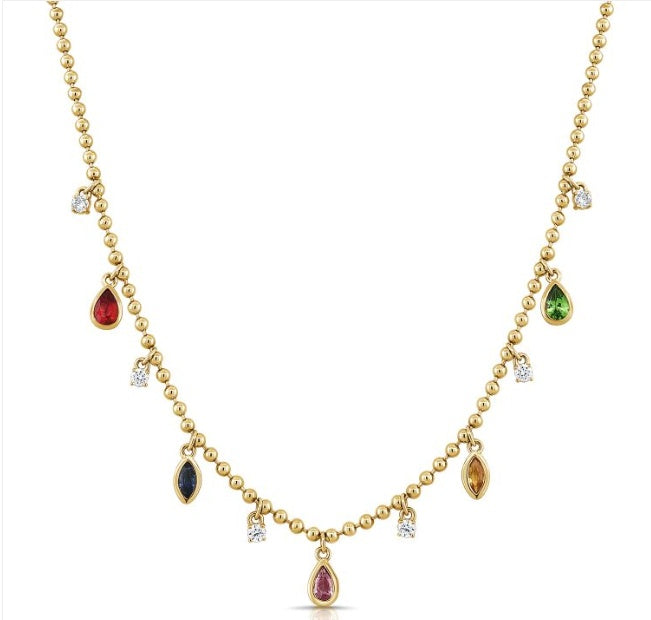 EMERALD SHAPE AND ROUND DIAMOND BEZEL STATION NECKLACE
