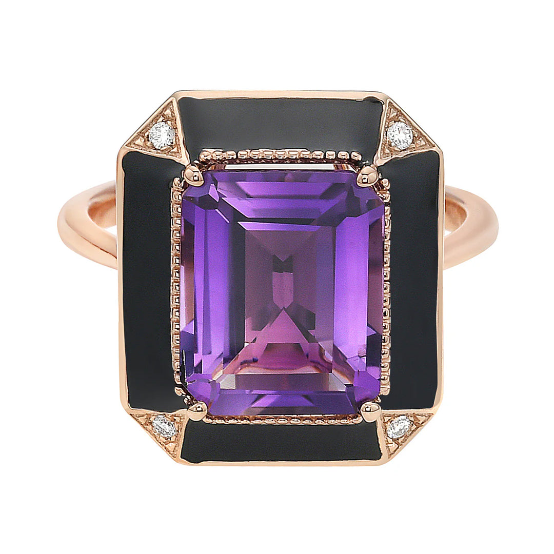 Amythest and black enamel Ring