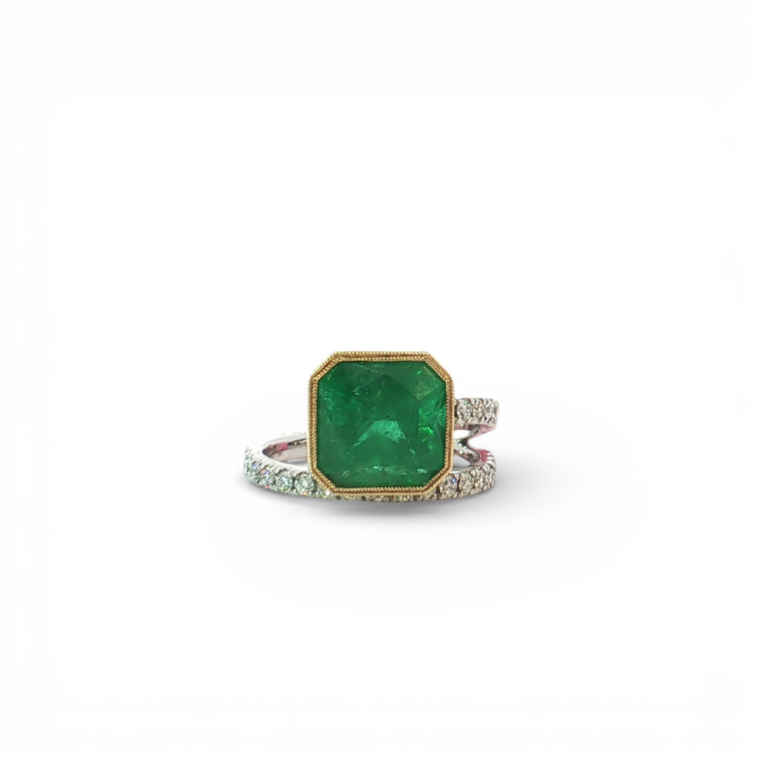 Green Emerald 4.14 CTW and Diamond wrap ring